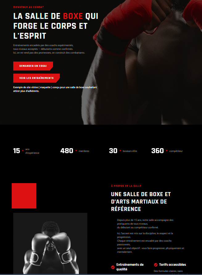 Cela inclut la conception du site, sa mise en ligne, les bases du référencement local et un accompagnement après livraison.